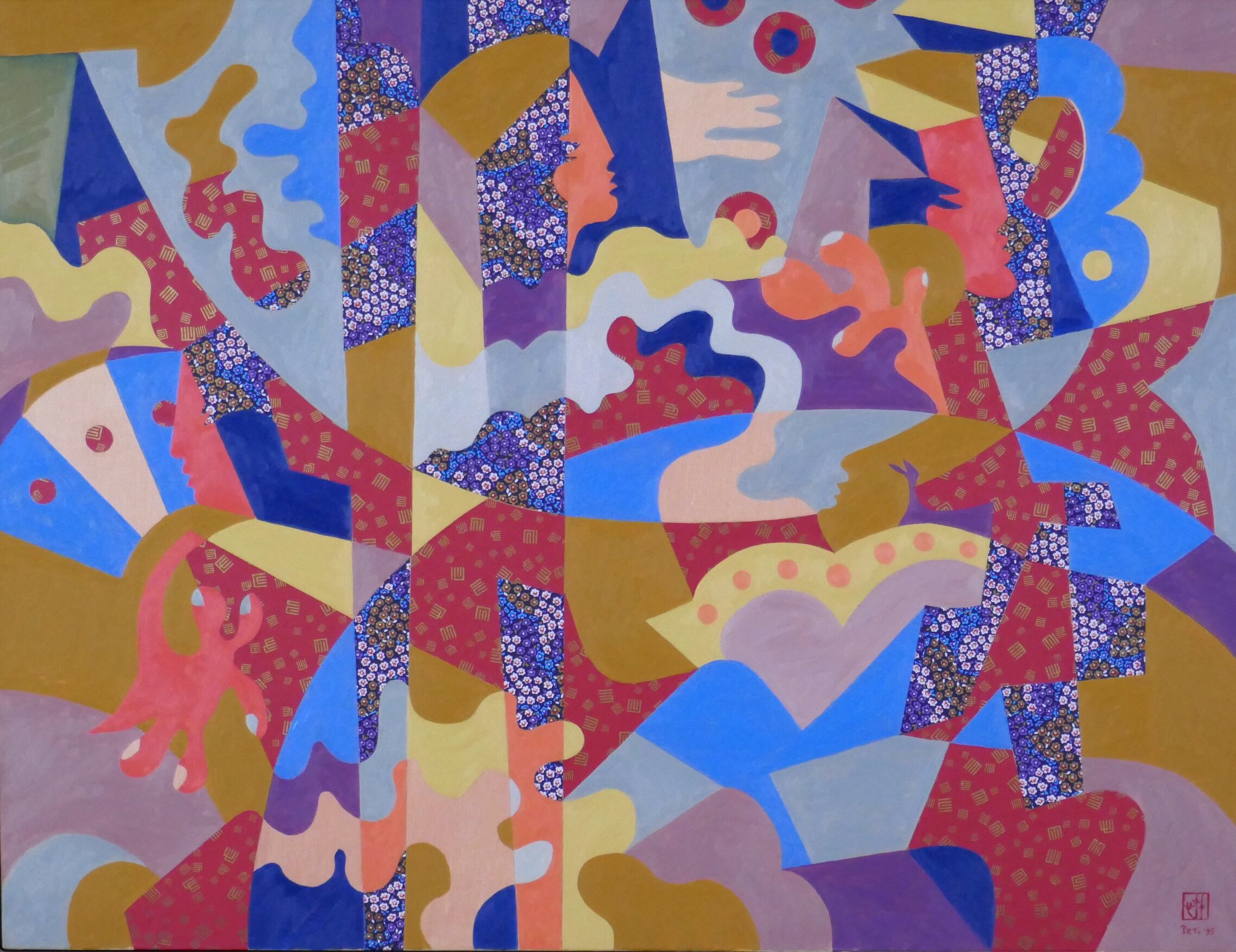 ■テクニック:キャンバスに油彩・千代紙(額縁つき)