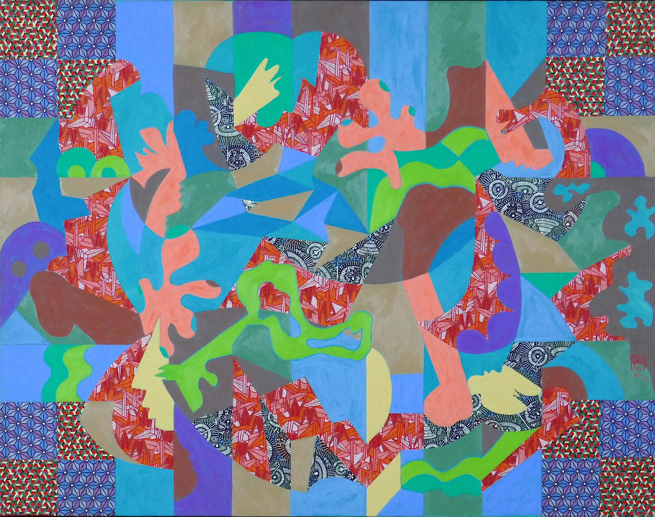■Technique, Material: oil and chiyo paper on canvas (with frame)